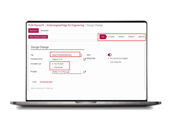 Set up the stages and types of product changes according to your organization’s internal engineering workflow.