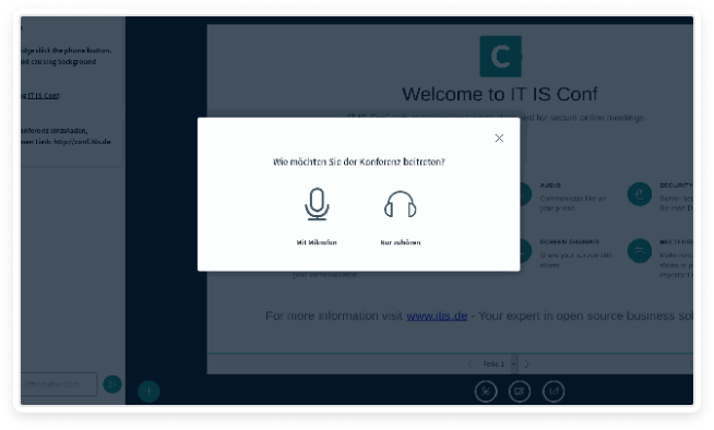 When entering the conference room, you can choose whether to participate with your microphone enabled or as a listener only.