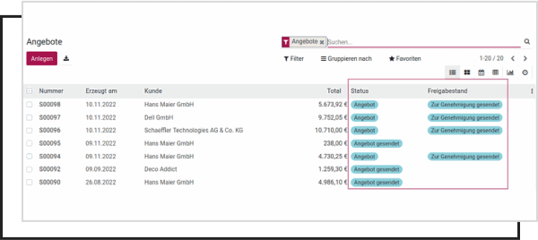 Easily track the progress of your quotations in list view: